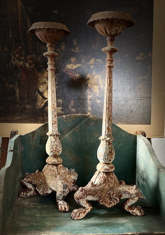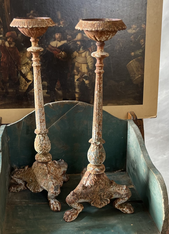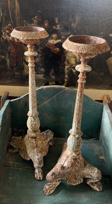 Metalen kandelaar met een grote sierlijke 3poot. Zeer mooi bewerkt!