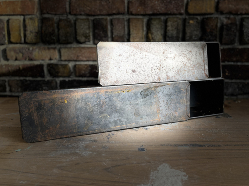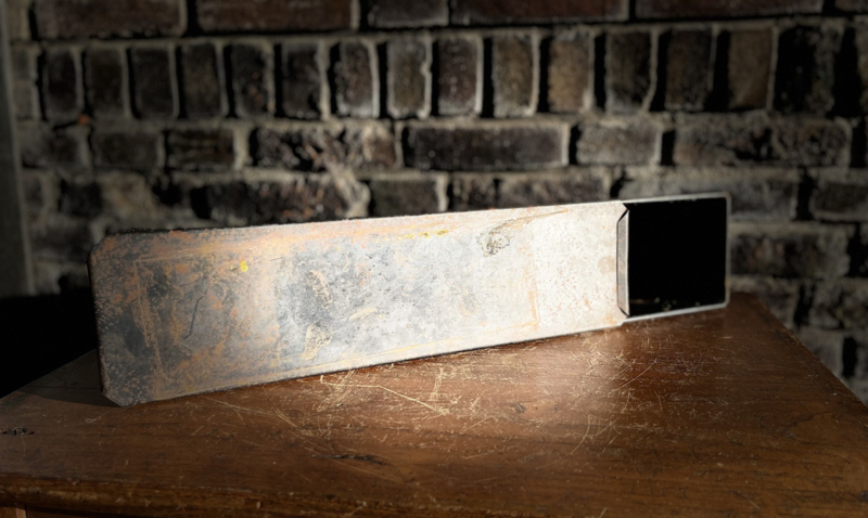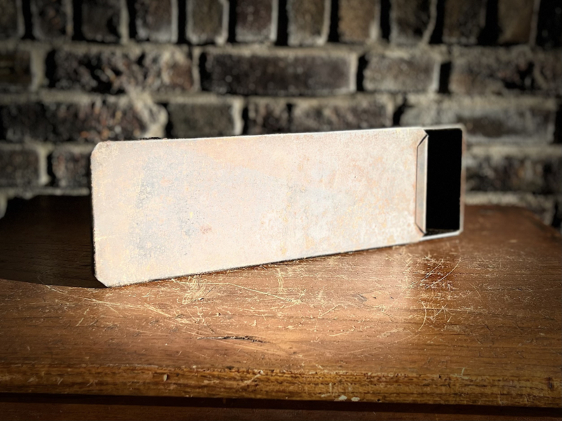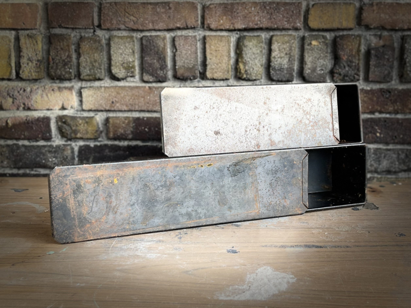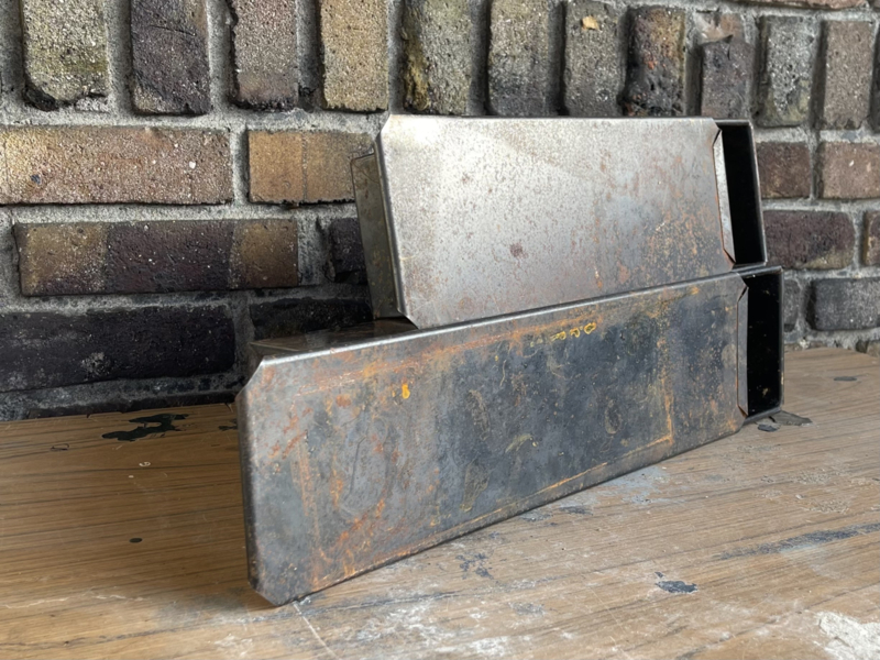 Mooie oude cakevorm een verweerd zwart/bruine kleur.
