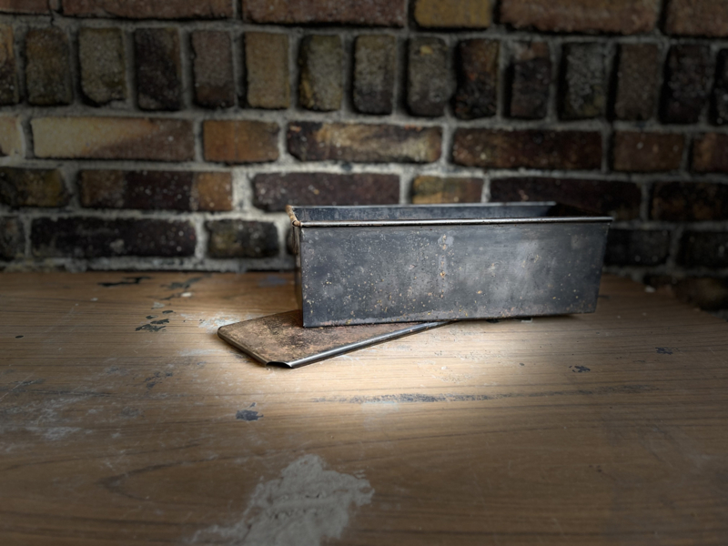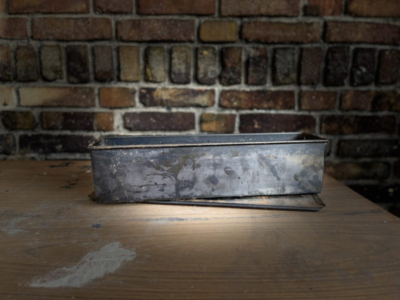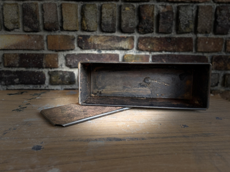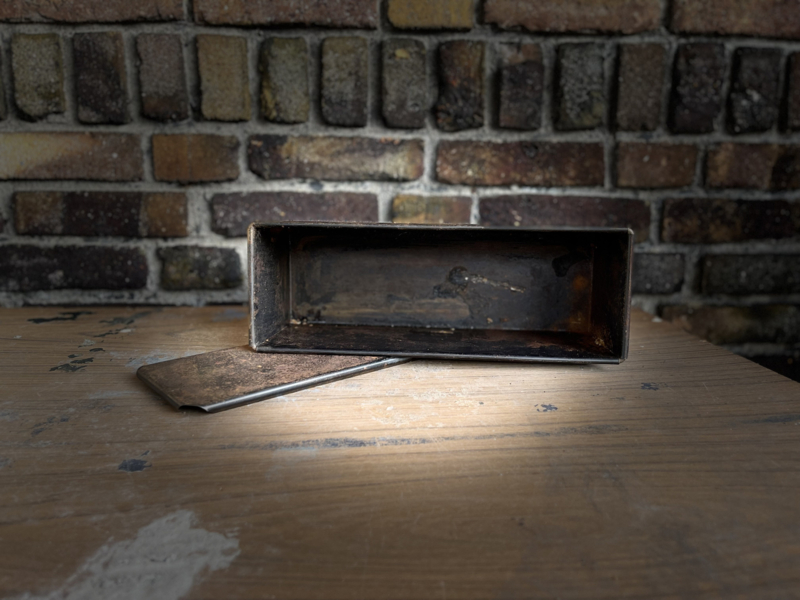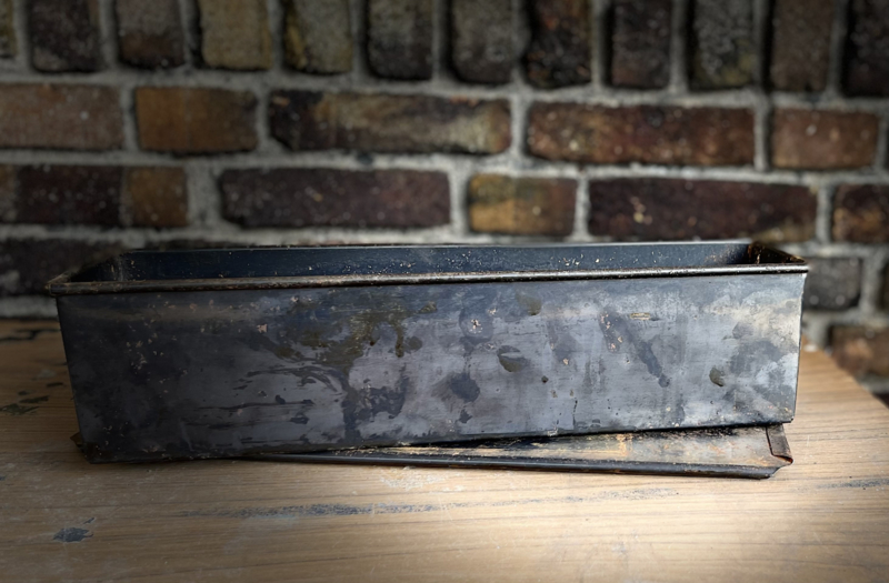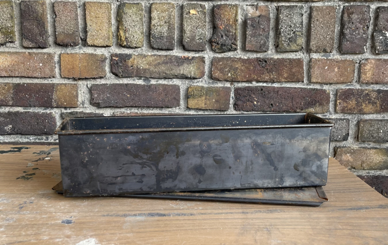 Mooie oude cakevorm een verweerd zwart/bruine kleur.