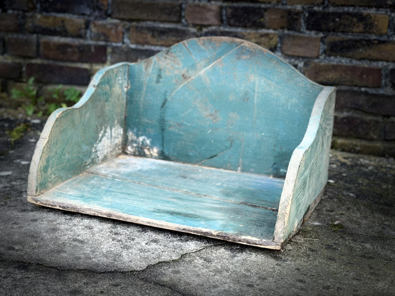 knielbak -boogEen houten knielbak, mooi oud blauwe kleur. We hebben er 2. Deze heeft een boog aan de bovenkant.