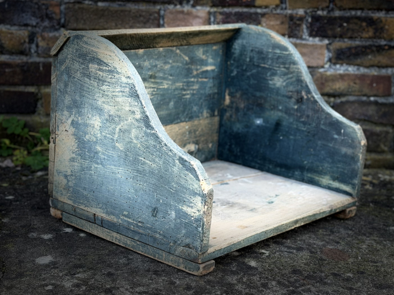 knielbak -rechtEen houten knielbak, mooi oud blauwe kleur. We hebben er 2. Deze heeft een rechte boevenkant.